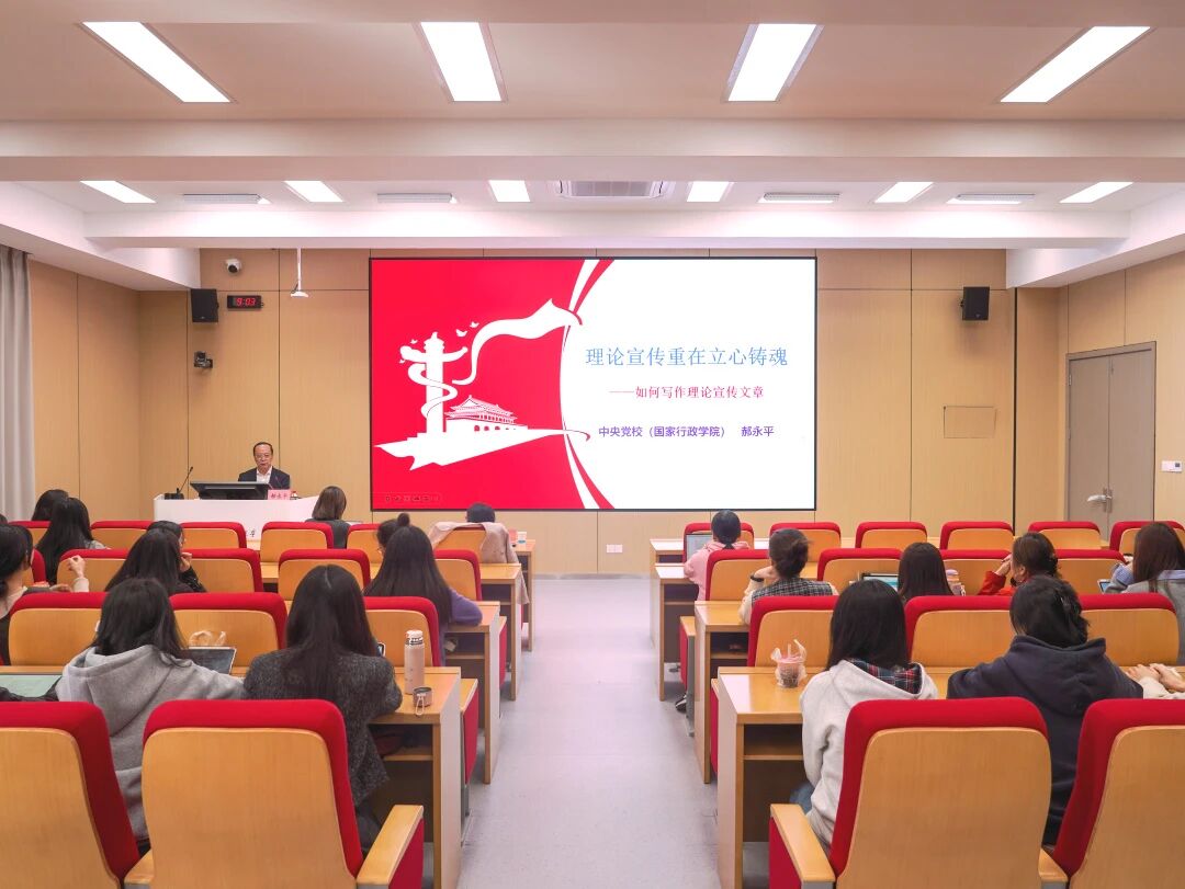 为精准把握理论宣传工作的重点方向,扎实掌握理论宣传文章的创作精髓,11月3日,中央党校(国家行政学院)教授、博士生导师郝永平应邀为学院开展主题为“理论宣传重在立心铸魂——如何写作理论宣传文章”的学术讲座。本次讲座由学院副院长刘艳主持,学院全体研究生参加。