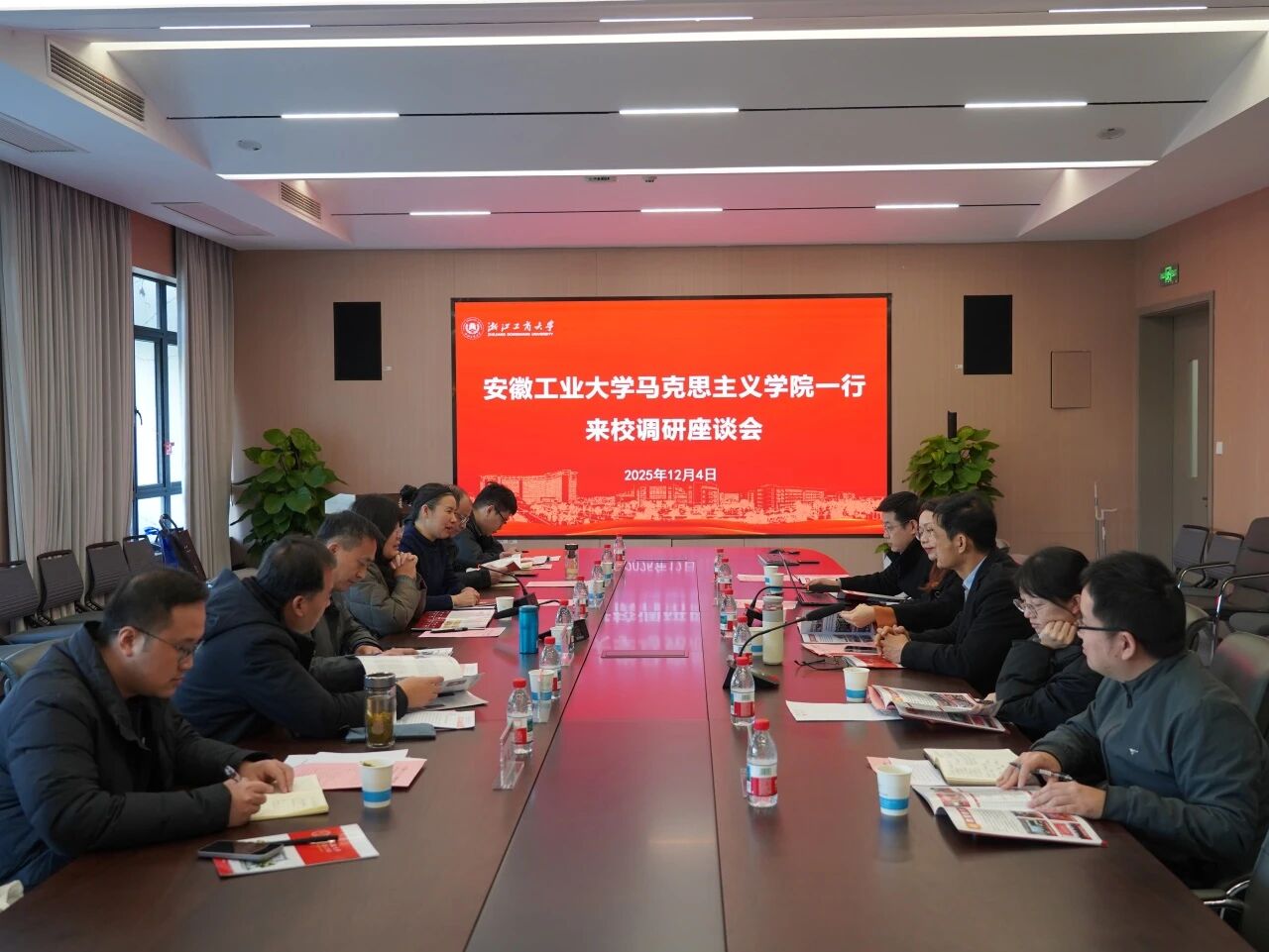 12月4日,安徽工业大学马克思主义学院党委书记徐惠、院长郑洁一行来我院开展调研交流。座谈会在E412会议室举行,我院院长李梦云、副院长于希勇、党委副书记吴太贵及部分教研部相关负责人参加会议,会议由李梦云主持。