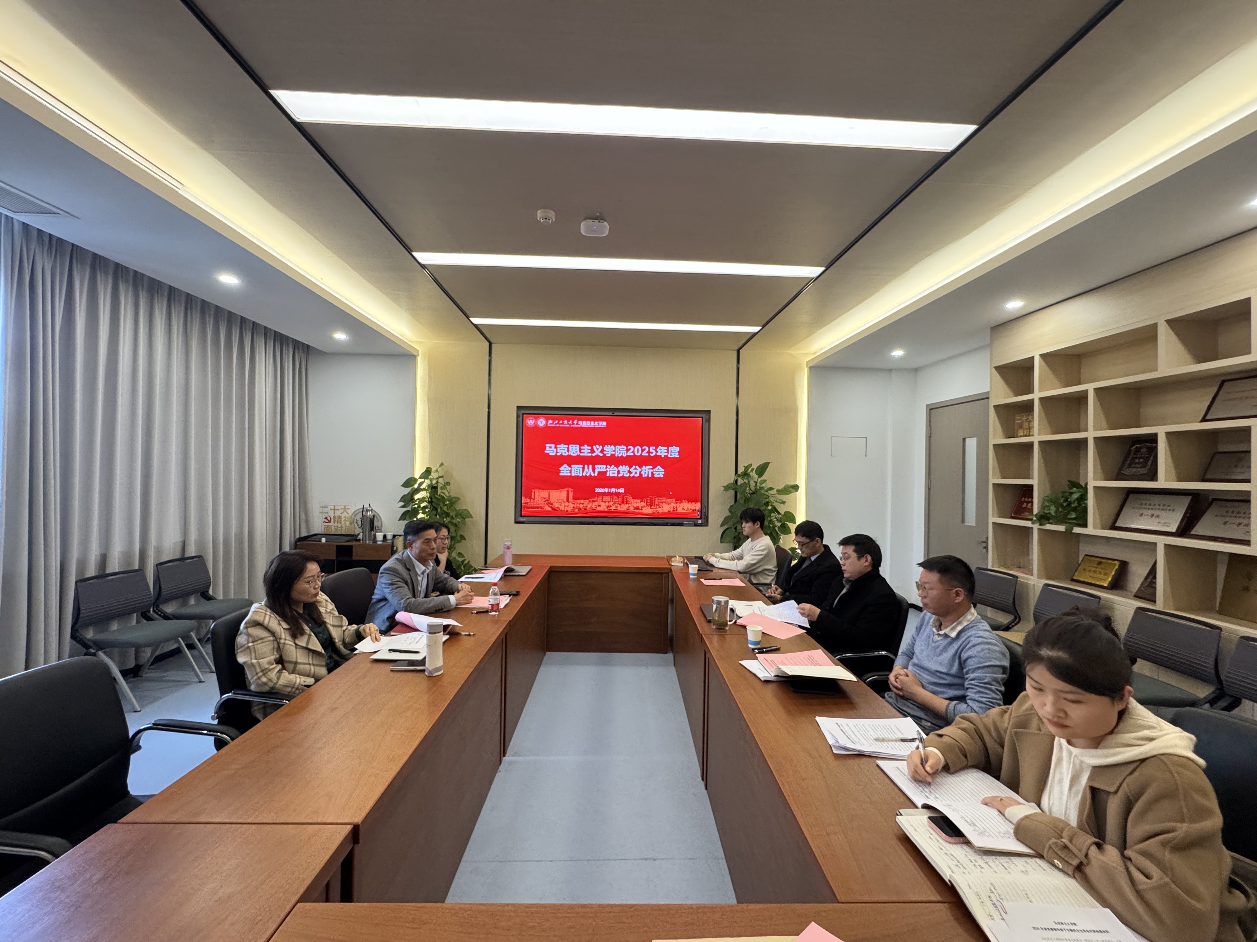 日前,为深入贯彻落实上级关于全面从严治党的工作部署,马克思主义学院党委在充分筹备、广泛征求意见的基础上,于E栋418会议室组织召开2025年下半年全面从严治党分析会。学院党委书记郑群雄主持会议,党政领导班子成员、学院两办主任及支部书记代表参加会议。
