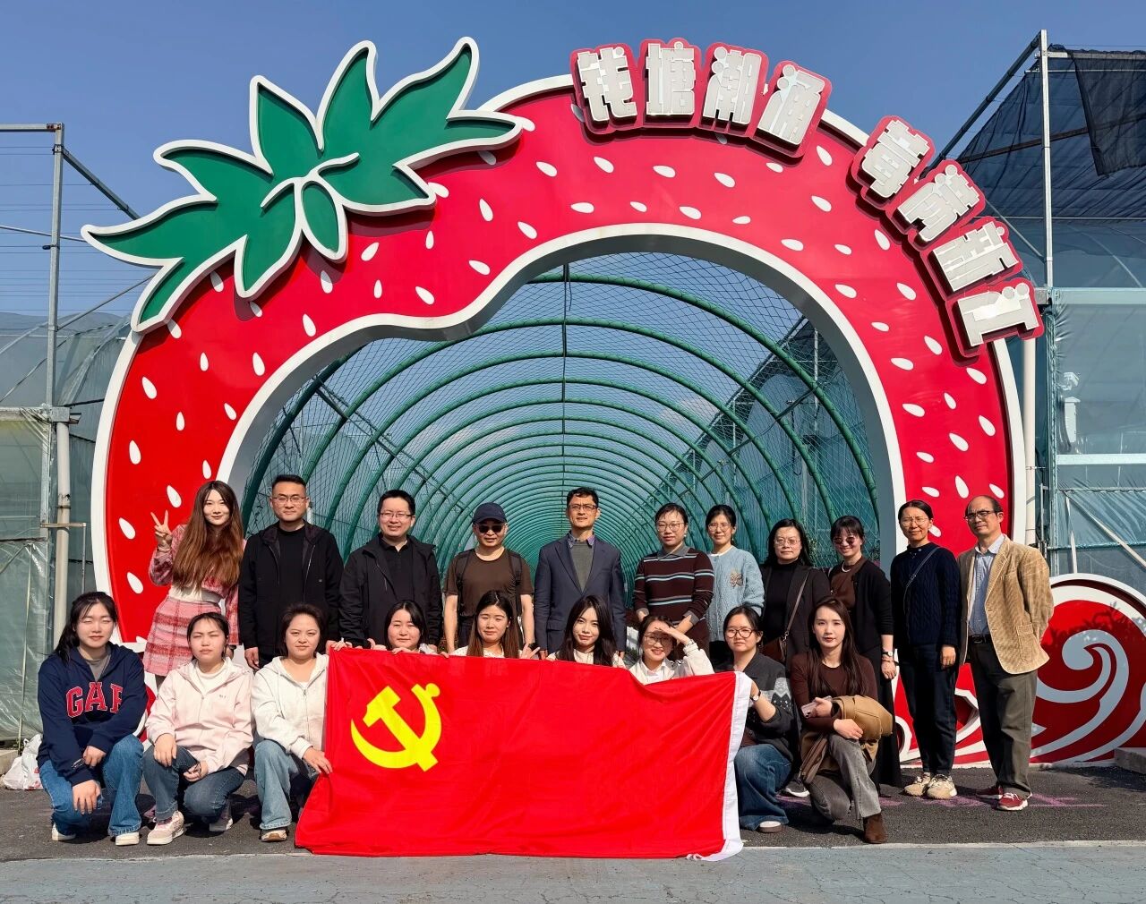 从单一的"章姬"奶油草莓到如今红、粉、白、橙多色并存的多元品种,从传统线下采摘拓展至"采摘+旅游+直播+研学"融合新业态,新江村以一颗小草莓为切入点,构建起完整的草莓产业链,带动村民人均增收显著,使"小草莓"成为村民致富的"大产业"。支部党员与学生们认真倾听、仔细询问,详细记录产业发展中的创新举措和成功经验,纷纷表示,新江村的发展实践,生动展现了"千万工程"经验的深刻内涵,是乡村振兴战略在基层落地生根的生动体现,为今后的思政教学提供了丰富素材。